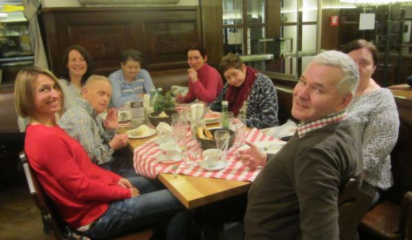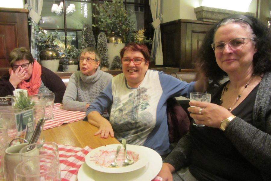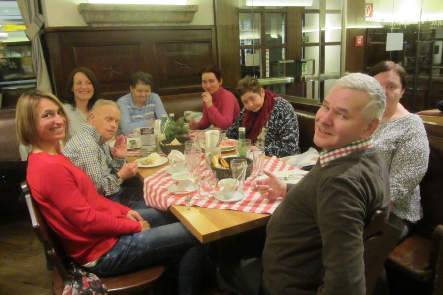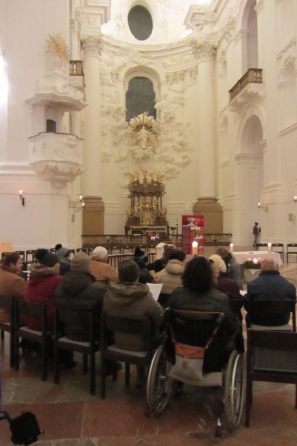 Zuvor wurde ein köstliches Abendessen im Sternbräu eingenommen. Besonders begeistert waren alle von den berühmten Salzburger Nockerl. Anschließend spazierten alle bei leichtem Schneefall durch den Salzburger Christkindlmarkt und die weihnachtlich geschmückte Getreidegasse Richtung Kollegienkirche. Nach einer herzlichen Begrüßung und dem freudigen Wiedersehen mit den ehemaligen Barmherzigen Schwestern von Provinzenz Schernberg wurde eine berührende Hl. Messe gefeiert. Nach der Agape fuhren alle mit einem persönlich überreichten Geschenk des Veranstalters glücklich nach Hause.