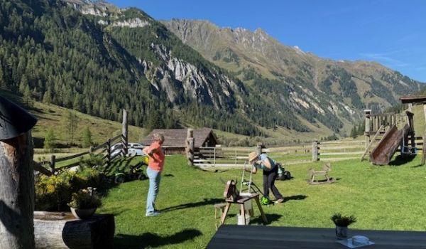 Gemeinsam ging es in die Berge, wo frische Luft, schöne Ausblicke und die ruhige Natur auf die Gruppe warteten. Vor Ort blieb viel Zeit, die Umgebung zu genießen, beisammen zu sitzen und die besondere Atmosphäre der Alm auf sich wirken zu lassen.