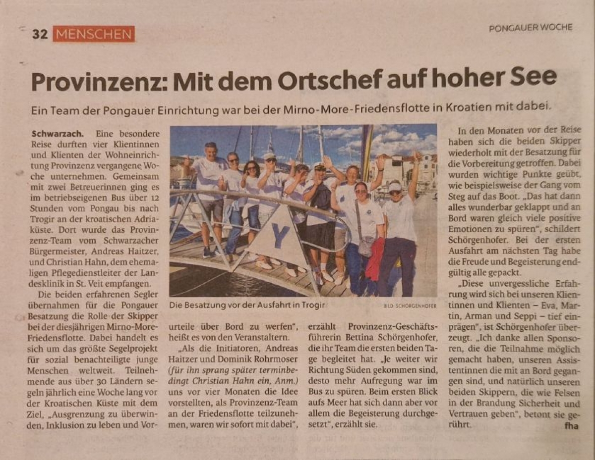In den Salzburger Nachrichten und den Pongauer Nachrichten wurde über unsere Teilnahme bei der Mirno More Friedensflotte berichtet. Ein sehr lesenswerter Artikel über eine unvergessliche Woche voller Gemeinschaft und Abenteuer