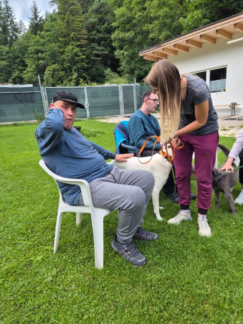 Vor Kurzem unternahm der Standort Liefering einen besonderen Ausflug zum Hundeplatz in Waidring. Dort hatten die Teilnehmer:innen die Gelegenheit, viele Hunde kennenzulernen, zu streicheln und sogar zu füttern – ein Erlebnis, das für viele herzliche Begegnungen und schöne Momente zwischen Mensch und Tier sorgte.