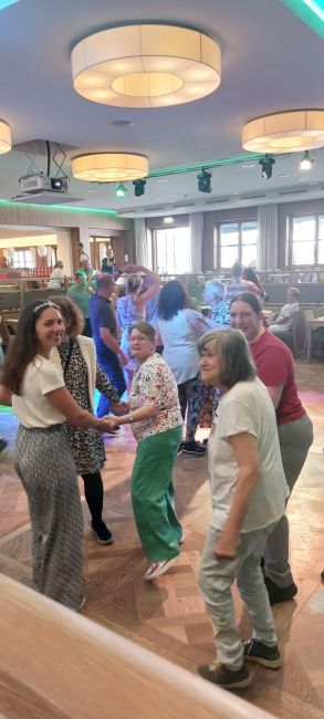 Auch der Standort Mitterberghütten ist regelmäßig mit dabei und genießt das gemeinsame Tanzen und Beisammensein. Besonders schön: Immer wieder stoßen auch ehemalige Mitarbeiter:innen von Provinzenz dazu und freuen sich über das Wiedersehen mit altbekannten Gesichtern.