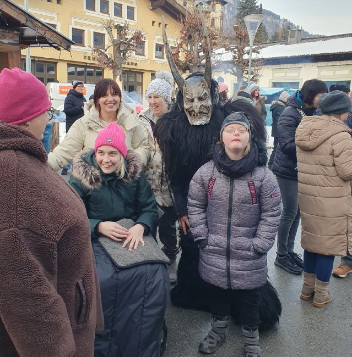 Die Gruppe nutzte die Gelegenheit, den Krampussen ganz nah zu kommen und sie sogar zu berühren.