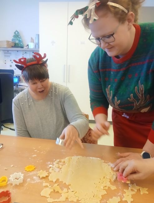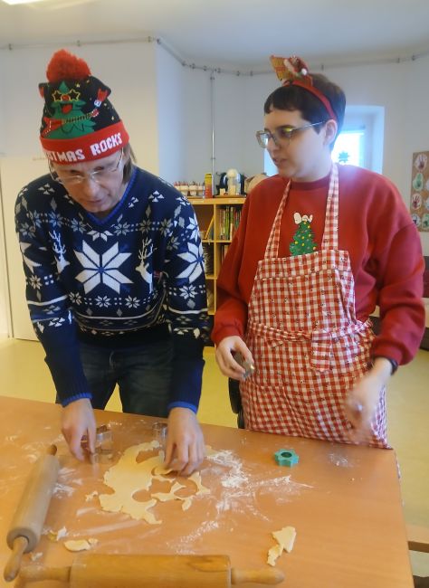 In der Wachswerkstätte Schernberg wurde die Adventzeit ebenfalls genutzt, um gemeinsam Kekse zu backen. Beim Ausstechen, Verzieren und Probieren herrschte eine fröhliche Stimmung, und schon bald lag der Duft der frisch gebackenen Kekse in der Luft.