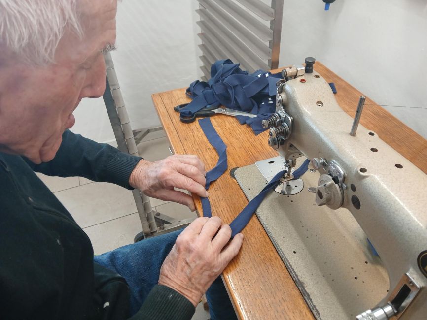 Im Tageszentrum Schernberg wird aus „nicht mehr gebraucht“ ein echtes Lieblingsstück: die ausgediente Arbeitskleidung unserer Schwesterorganisation Lebensraum Herz-Jesu landet nicht im Abfall – sondern auf unseren Werktischen.