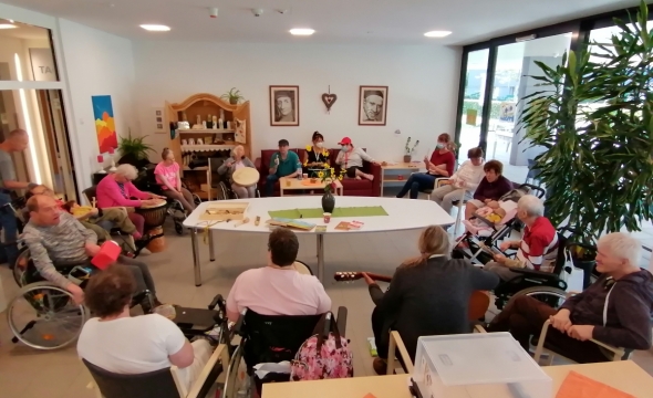 Im Tageszentrum Provinzenz Liefering findet jede Woche eine gemeinsame Musikstunde statt.