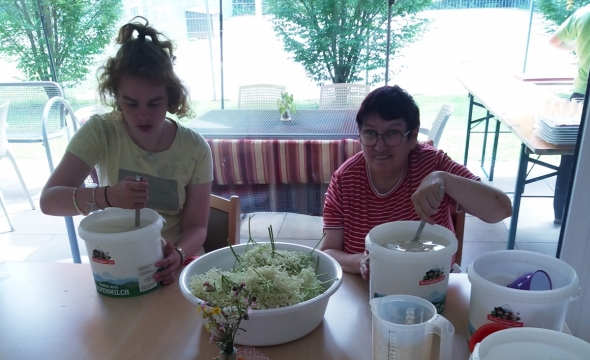 Die Klient*innen von Provinzenz Mitterberghütten haben dieses Jahr einen Hollersaft zubereitet.