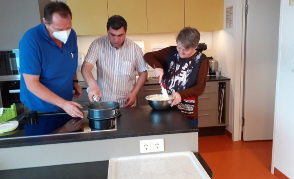 Im Provinzenz Schernberg im Wohnbereich Jakob hatte eine Klientin Geburtstag. Natürlich darf ein leckerer Geburtstagskuchen nicht fehlen.