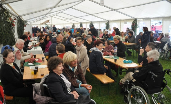 Im sehr gut besuchten Festzelt im Provinzenz Schernberg feierten viele Gäste mit den Klientinnen und Klienten das Herbstfest. Es wurde getanzt, gesungen, geplaudert und hervorragend gespeist. Ein Tag des guten Miteinanders, der guten Laune, der Freude!