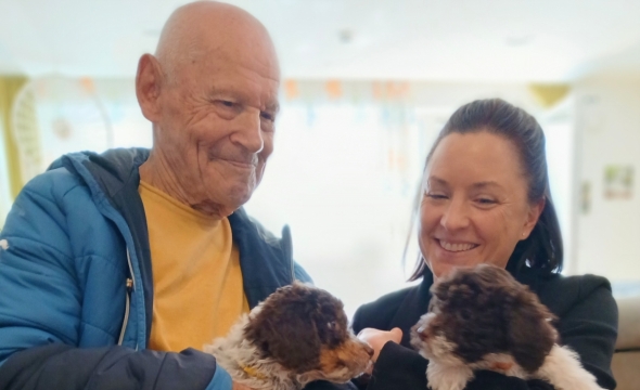 In Provinzenz Schwarzach Markt durften wir kürzlich besonderen Besuch begrüßen: Welpen, die aktuell ihre ersten Trainings für die Ausbildung als Therapiebegleithunde absolvieren.