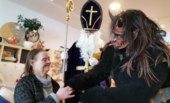 Am 6. Dezember wurden im Provinzenz Schwarzach Markt gleich zwei Feiern an einem Tag veranstaltet. Eine Bewohner*in feierte ihren 61. Geburtstag und der Hl Nikolaus kam zu Besuch.