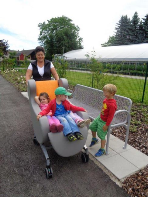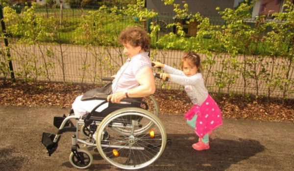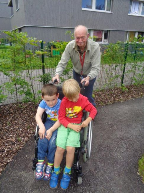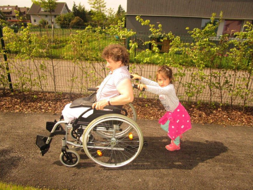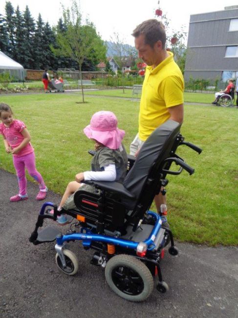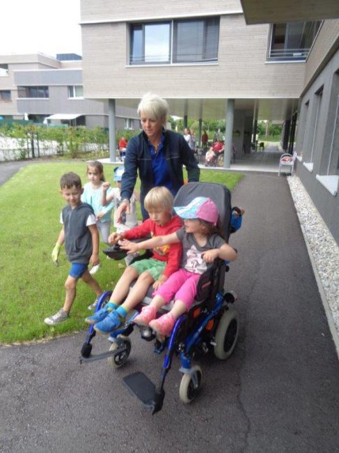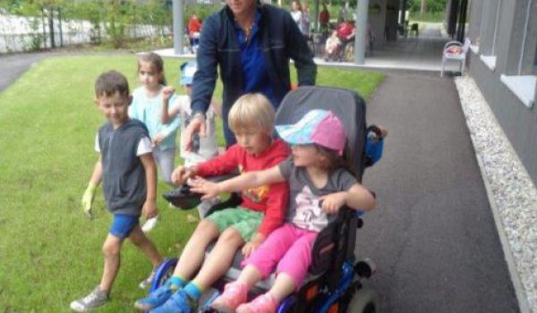 Die Andersartigkeit des anderen verstehen und begreifen zu lernen war dann ein weiterer Schwerpunkt bei einem darauffolgenden Besuch von den Kindern. Wie fühlt es sich an, wenn man nur eingeschränkt gehen oder nicht hüpfen, springen, tanzen kann? Wie kommt man trotzdem von A nach B, welche Möglichkeiten gibt es sich fort zu bewegen? Um den Kindern dies versteh- und begreifbar zu machen, stellten manche Klientinnen und Klienten ihre Rollstühle, Rollator, etc. zur Verfügung. Besonderes Augenmerk wurde dabei dem, von den Kindern liebevoll genannten „Turbo-Rolli“, - gemeint war damit der elektrische Rollstuhl - geschenkt.
