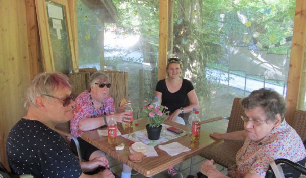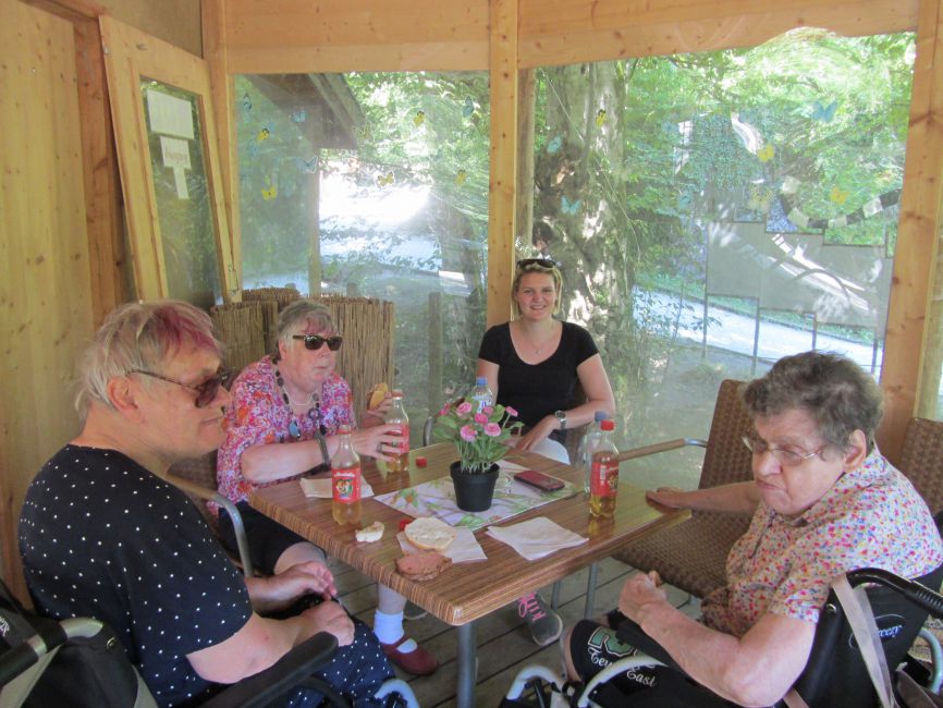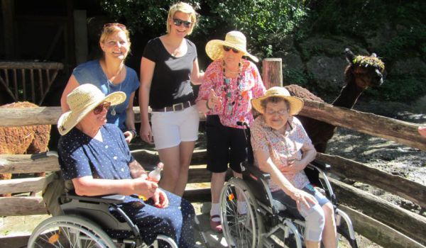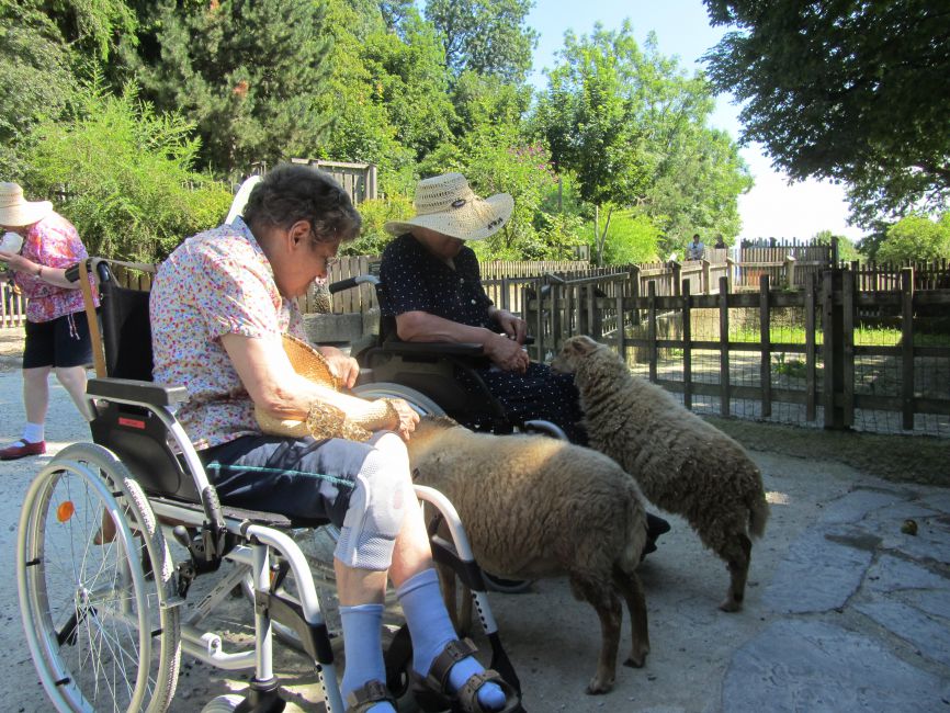 Nach dem Mittagessen besuchten die Ausflügler noch den Streichelzoo. Dort konnte man Ziegen und Mini-Schweine füttern. Die Klientinnen waren sichtlich von diesem Streifzug durch die Tierwelt begeistert.