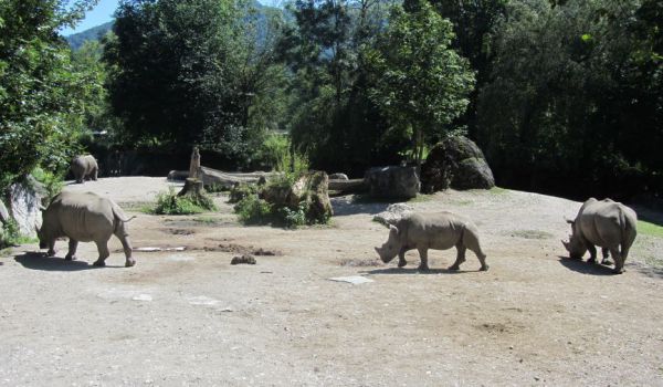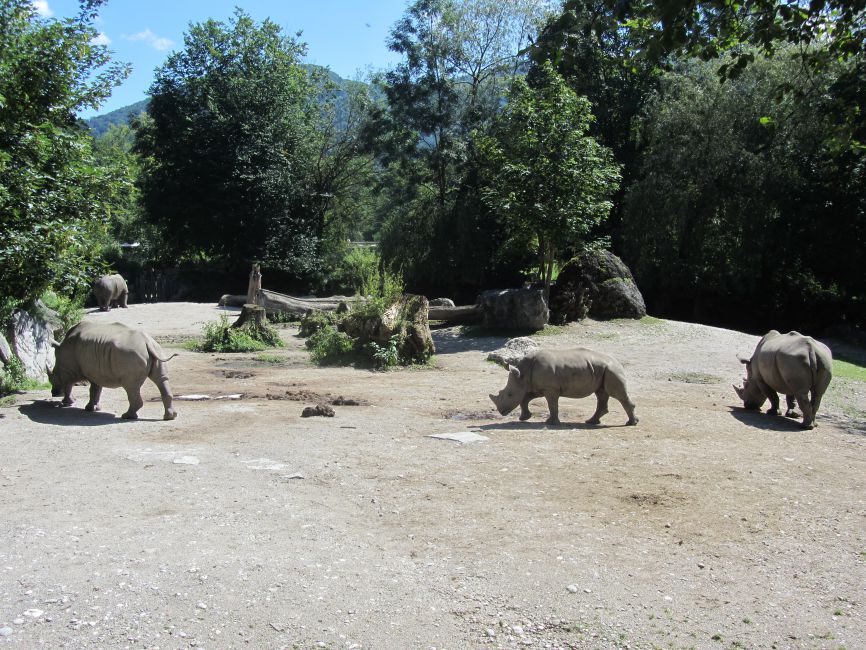 Aufgrund der warmen Temperatur wurde bald eine Pause an einem schattigen Platz eingelegt. Gestärkt und voller Tatendrang wurde der Rundgang zu den Nashörnern fortgesetzt. Diese großen Tieren imponierten sehr. Danach wurden noch Affen, Flamingos, Zebras, Schildkröten, Vögel, Schlangen und das Löwenhaus besucht. Von den Löwen war jedoch wegen der Hitze weit und breit nichts zu sehen.