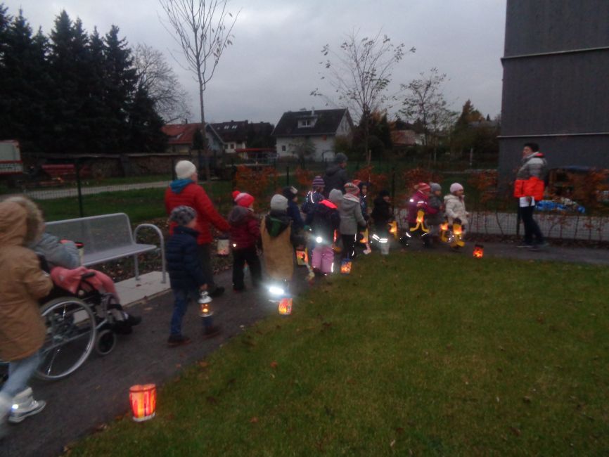 Am 11. November ist das Fest des hl. Martin. Gemeinsam mit dem Kindergarten Baldehof, deren Eltern und eingeladenen Gästen wurde das Martinsfest veranstaltet. Bei Einbruch der Dämmerung zog der Umzug durch den Garten wo sich dann alle auf der Terrasse von Provinzenz Liefering einfanden. Die Laternen, welche im Vorfeld liebevoll mit den Kindern gestaltet wurden, verbreiteten in der Dunkelheit viel Licht und Wärme. Mit Begeisterung führten die Kinder das bewegende Leben und die Hilfsbereitschaft des hl. Martin vor: