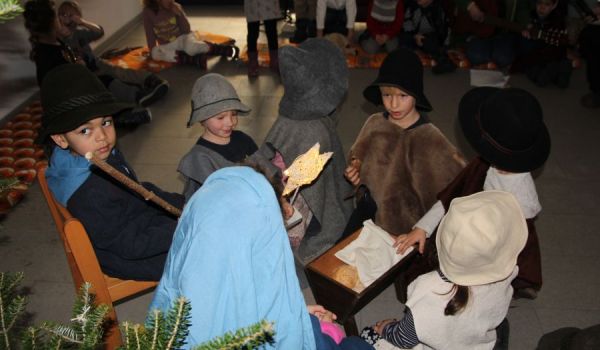 Das gemeinsame wöchentliche Feiern des Advents mit Anzünden der Kerzen stimmte alle auf das bevorstehende Weihnachtsfest ein. Die Weihnachtsgeschichte von Maria, Josef und der Geburt Christi wurde anhand eines Puppentheaters vorgetragen.