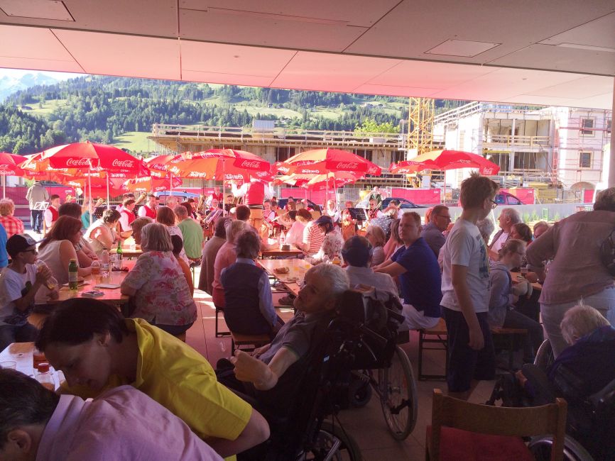 Zahlreiche Klientinnen und Klienten, Angehörige, Sachwalter und Freunde des Hauses sowie Mitarbeiterinnen und Mitarbeiter waren auf die Terrasse des Haus Königsegg gekommen, um das Konzert zu genießen. Die Musikerinnen und Musiker aus Goldegg hatten zahlreiche schwungvolle und bekannte Musiktitel mitgebracht, die bei den Besuchern viel Freude und gute Laune hervorriefen. Das Sommerwetter und die angebotene Kulinarik machten den Abend perfekt und so bot die Veranstaltung viele musikalische und herzliche Begegungsmöglichkeiten.