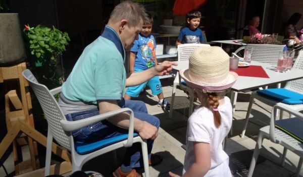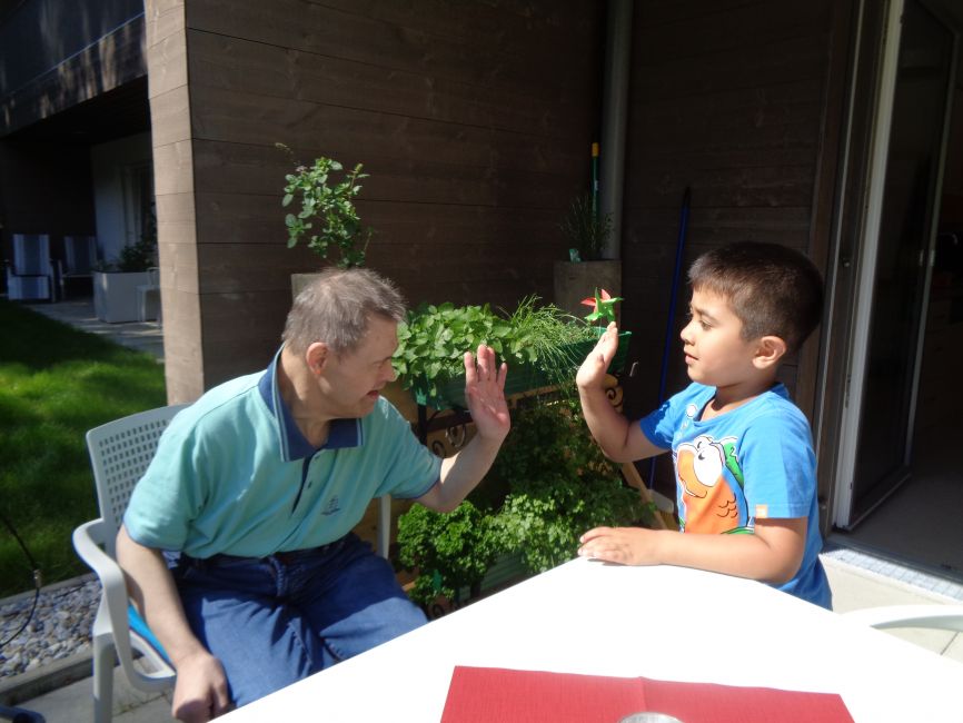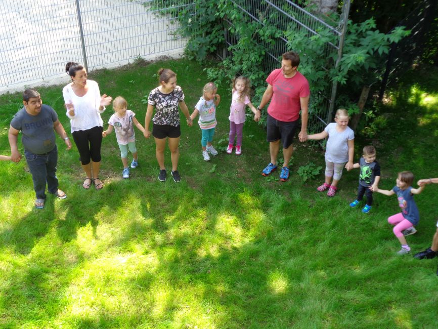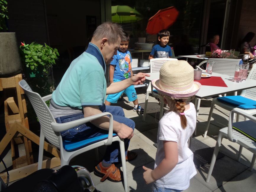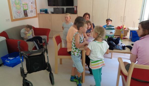 Die Kinder überreichten selbstgemalte Bilder als Geschenk. Die Klienteninnen und Klienten überraschten wiederum die Kinder mit einer selbstgebastelten Raupe und vielen verschiedenen Süßigkeiten. Es wurde viel gelacht, gesungen und getanzt. Nachdem es für alle Beteiligten eine sehr schöne und spannende Erfahrung war, wurde bereits ein nächstes Treffen geplant.