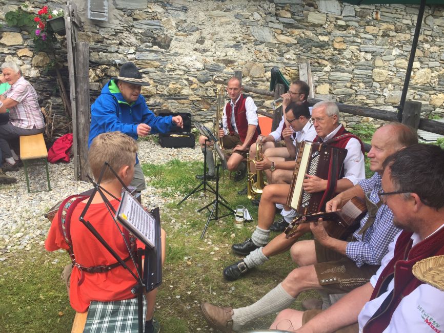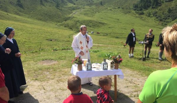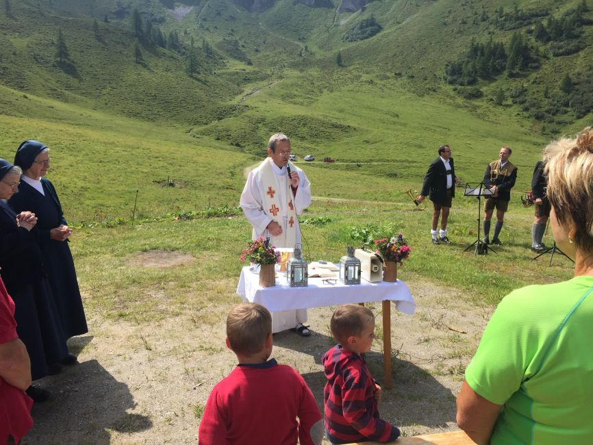 Pater Otmar Auinger SVD - priesterlicher Mitarbeiter in Goldegg und St. Veit - zelebrierte eine feierliche Messe, die durch die „Seewies´n Musi“ stimmungsvoll umrahmt wurde. Nach der Messe gab es ein gemütliches Beisammensein und die qualitätsvollen Speisen der Familie Lercher wurden genossen. Auch einige Bewohnerinnen, Bewohner, Mitarbeiterinnen und Mitarbeiter von Provinzenz erlebten einen herrlichen Tag in den Bergen. Ein herzliches Dankeschön an alle, die zum Gelingen beigetragen haben.