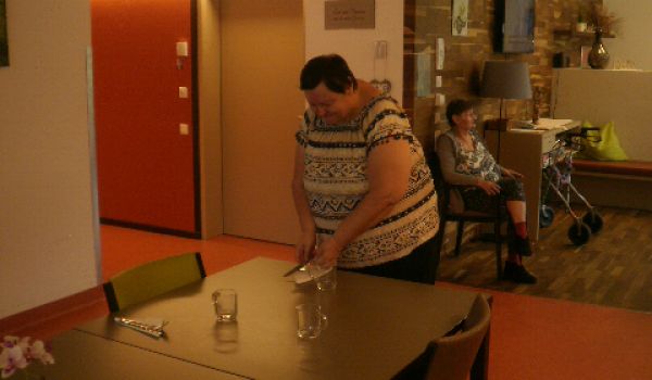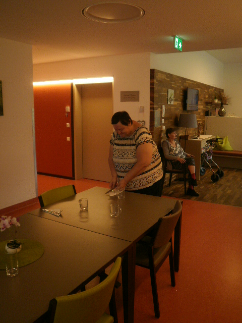 Weiters übernehmen einige mit Begeisterung Tätigkeiten der Haushaltsführung – es werden die Tische für die Mahlzeiten vorbereitet, Geschirr gewaschen, Reinigungsarbeiten durchgeführt, Blumen gegossen, abgestaubt, Wäsche verräumt und vieles mehr. Besonderer Sorgfalt bedürfen dabei die angepflanzten Gemüsesorten auf den jeweiligen Terrassen: Cocktailtomaten, Snackgurken und Paprika. Diese werden gehegt und gepflegt bis sie schlussendlich mit Genuss verspeist werden.