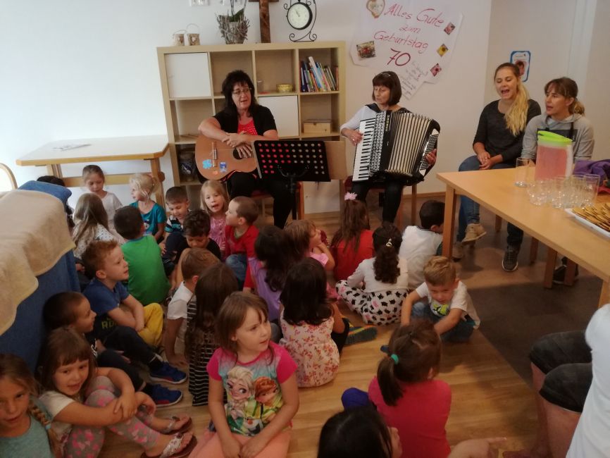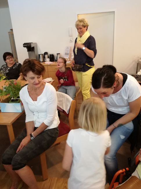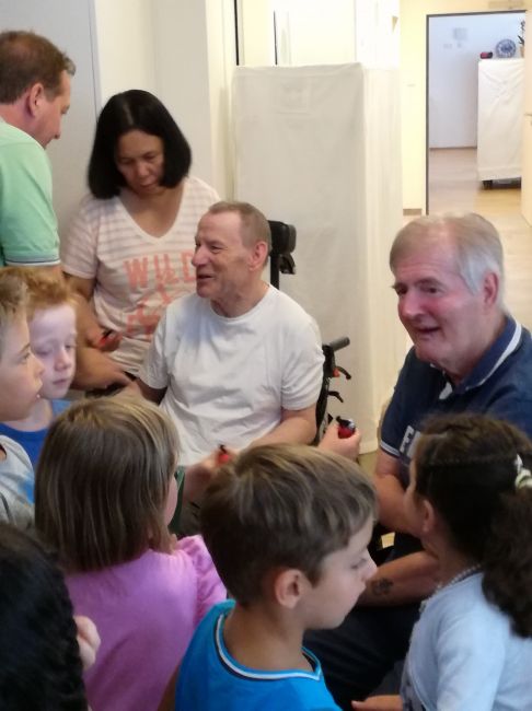 Die Klienten und Klientinnen freuten sich sehr über den Besuch der jungen Gemeindemitglieder. Gemeinsam wurde musiziert, getanzt und gelacht. Zur freudigen Überraschung brachten die Kinder selbstgebastelte Geschenke mit, welche sie jedem Einzelnen persönlich überreichten. Dieser besondere Vormittag endete mit einer gemeinsamen Jause und dem gegenseitigen Versprechen, sich bald wieder zu sehen….