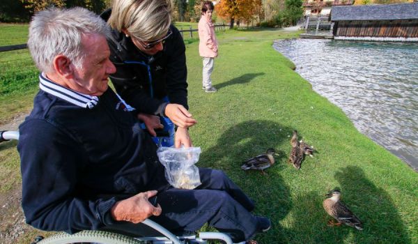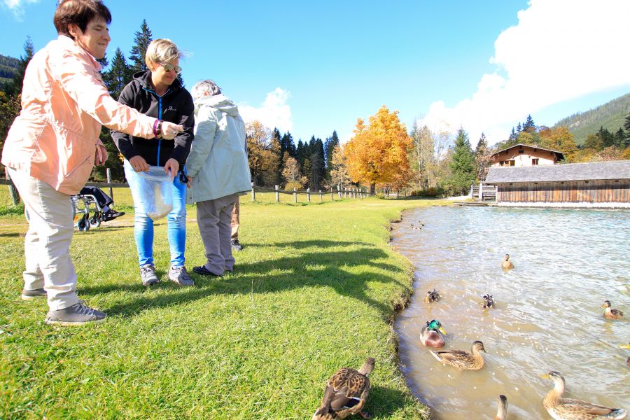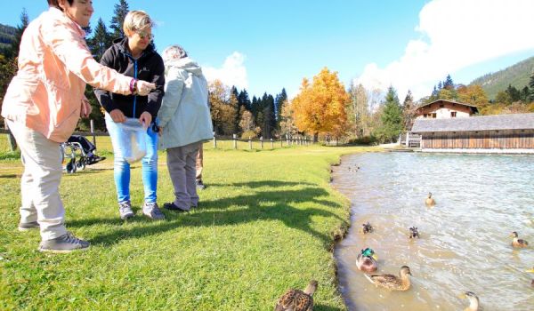 Bei einem Spaziergang am Seeufer entlang genoss jeder die warmen Sonnenstrahlen und den wundervollen Ausblick auf die umliegende Bergwelt. Auch die Enten und Schwäne kamen auf ihre Kosten und wurden ausgiebig gefüttert. Da frische Luft bekanntlich hungrig macht, gönnte sich die Gruppe im Anschluss noch einen leckeren Apfelstrudel mit Kaffee beim Gasthaus Jägersee.
