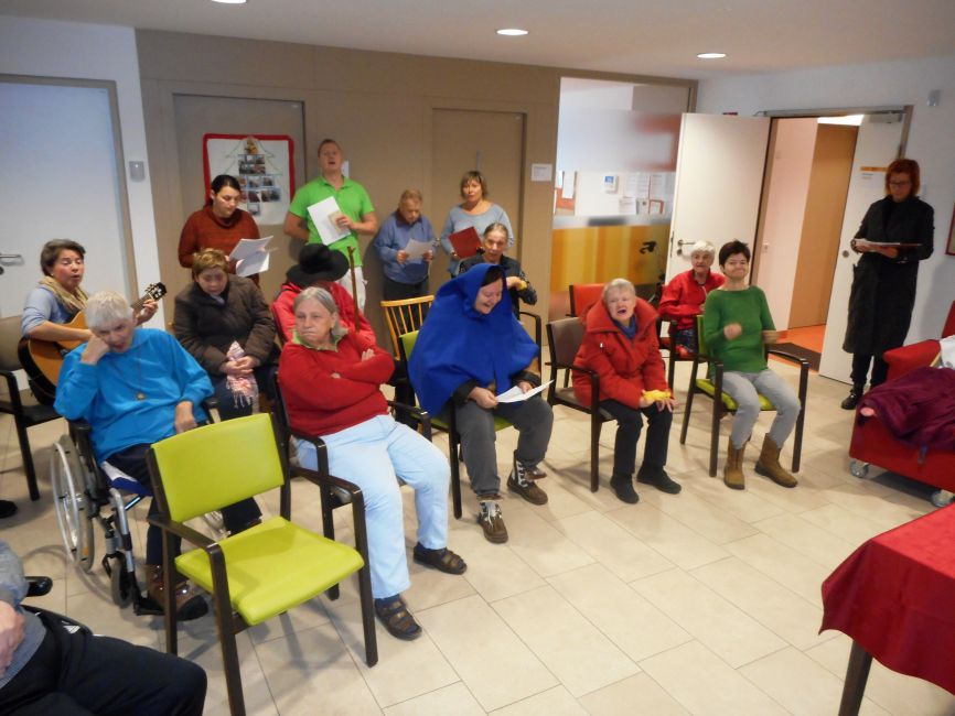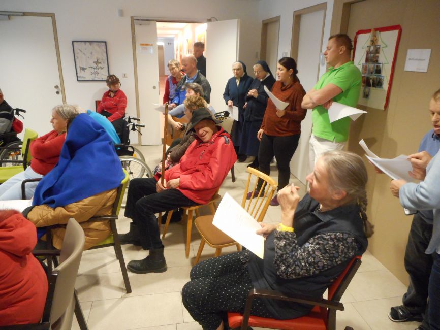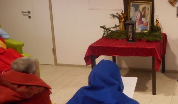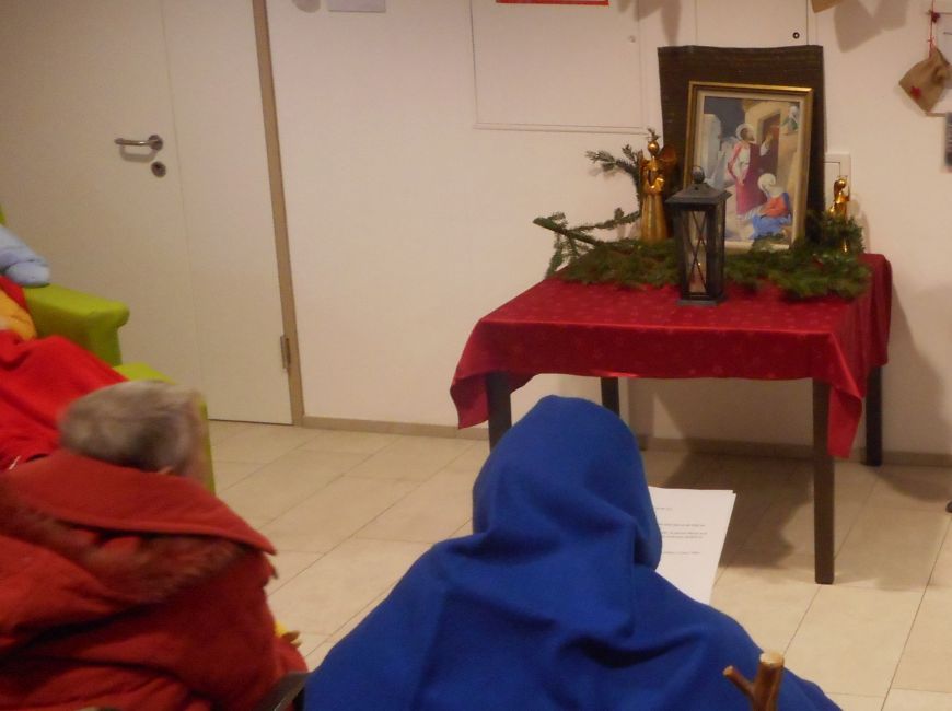 Das Bild - die „Frau-Tafel“ - wandert von einer Wohngemeinschaft zur anderen und von einer Tageszentrum-Gruppe zur nächsten. Mit viel Eifer, Freude und Enthusiasmus wird die Herbergsuche von unseren Klientinnen und Klienten nachgestellt. Es werden Lieder gesungen und kurze besinnliche Gebete und Adventgeschichten fordern zum Innehalten und still werden auf. Diese Darstellung der Quartiersuche lässt uns die Adventszeit bewusster erleben und entschleunigt unseren Alltag. Es ist aber auch ein Ausdruck, der uns anregt zum Nachdenken, denn es ist nicht selbstverständlich ein Zuhause zu haben oder aber auch willkommen zu sein und Geborgenheit zu verspüren.