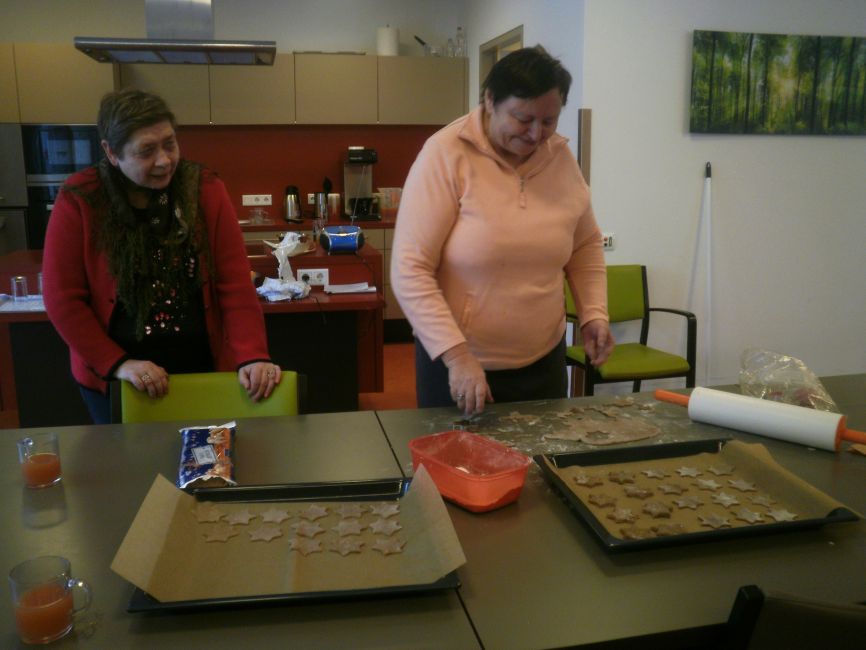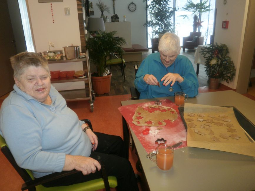 Zur Vorweihnachtszeit gehören auch Weihnachtskekse und wenn sie noch dazu selbst gebacken sind, schmecken sie natürlich besonders gut. Aus diesem Grund machten sich einige Klientinnen und Klienten aus den Wohnbereichen Elias, Anna und David ans Werk und zauberten einige köstliche Weihnachtskekse. Jeder war mit Eifer dabei und es wurde wie in einer Weihnachtsbäckerei fleissig geknetet, ausgestochen und verziert. Zu guter Letzt wurden die Kekse von den Hobbybäckern eifrig verkostet.