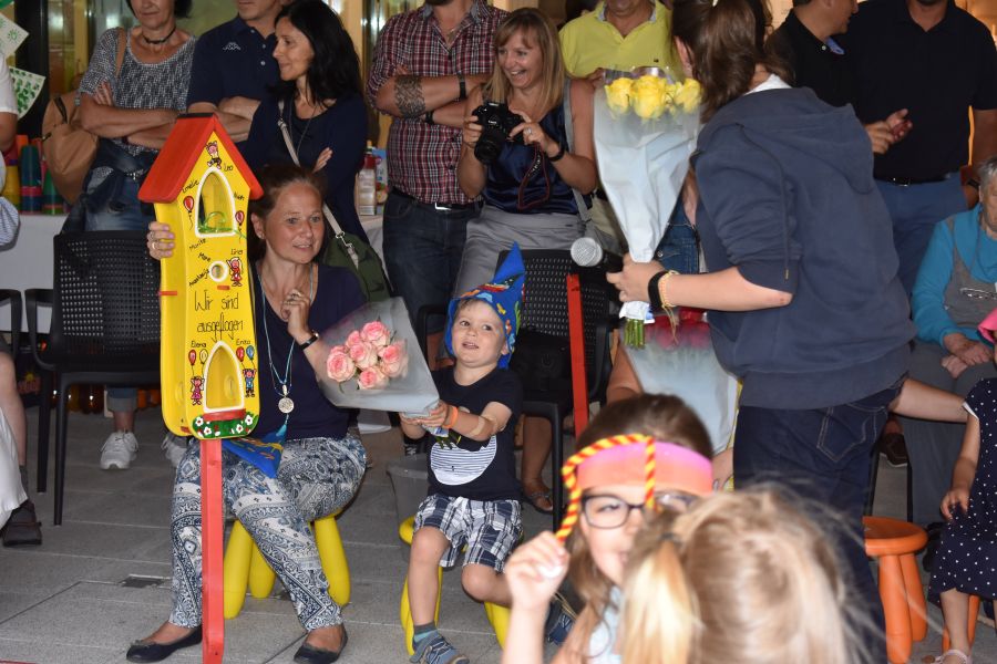Die Schulanfänger und deren Eltern dankten Kindergartenleitung Monika Bugarschitz und Kindergartenpädagogin Monika Pirchner mit einem Überraschungslied und speziellem Geschenk. Ebenso bedankte sich Werner Huttegger, Hausleitung von Provinzenz Liefering für die gute Zusammenarbeit mit dem Kindergarten Baldehof. Besonders erfreulich ist die rege Teilnahme der Eltern und der Kindergartenkinder gemeinsame Feste zu gestalten, einen kulinarischen Beitrag zu leisten und mit selbstgebackenen Kuchen, Desserts oder Salaten zu verwöhnen.