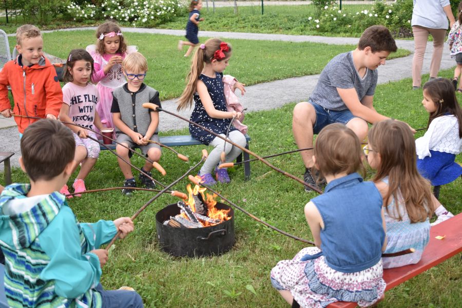 Zum fröhlichen Ausklang wurde noch zum Grillen und Dessertbüffet eingeladen. Vor allem für die Kinder war es ein tolles Erlebnis am offenen Feuer Würstchen zu grillen und im Garten herumzutollen.