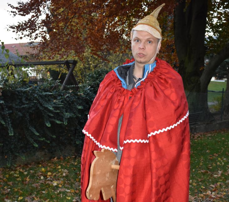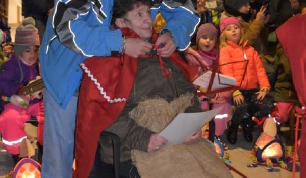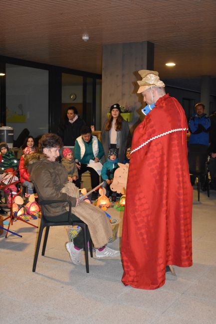 Singend zog der Umzug, begleitet vom Hl. Martin weiter durch den Garten, wo alle auf der Terrasse eintrafen. Anhand von Liedern und Geschichten spielten die Kinder, Klientinnen und Klienten das bewegende Leben vom Hl. Martin nach. Es war beeindruckend wie der Hl. Martin als Zeichen der Nächstenliebe seinen Soldatenmantel mit dem armen Bettler teilte. Diakon Hofbauer umrahmte das Martinsfest mit Gebeten, lud zum gemeinsamen Singen des „Vater unser“ ein und segnete die Martinskipferl. Besonders erfreulich war, dass auch viele Schulanfänger mit ihren Eltern dabei waren, um gemeinsam das Fest mitzugestalten.