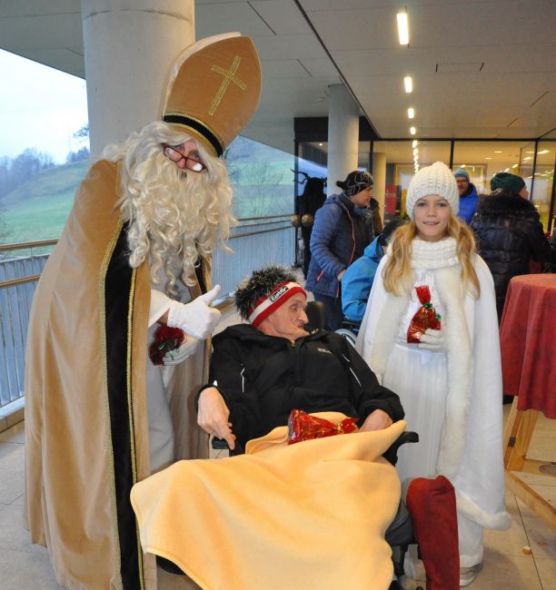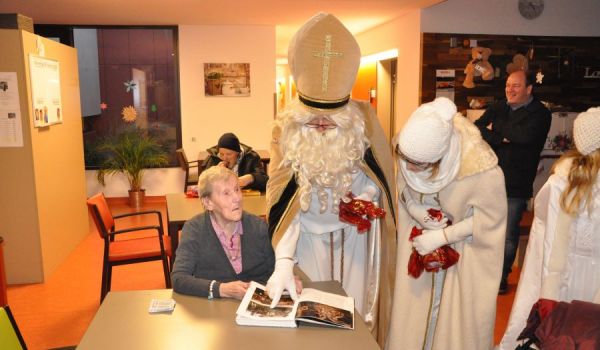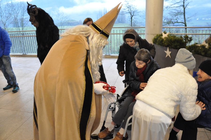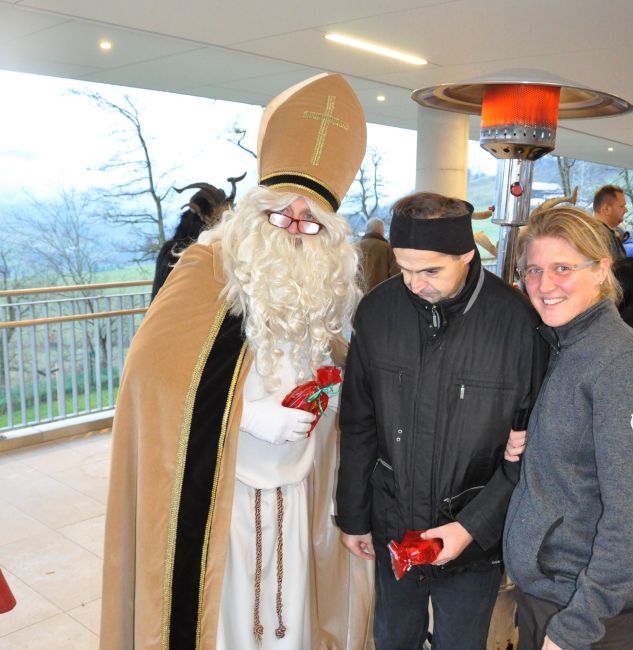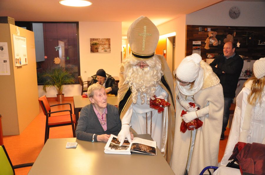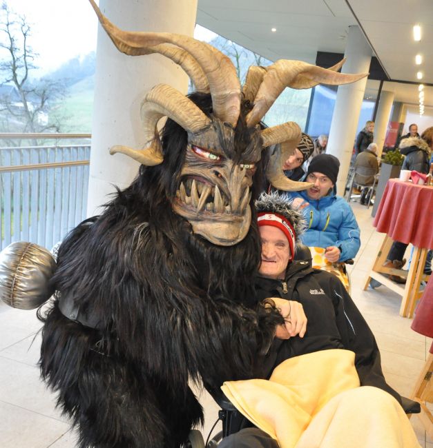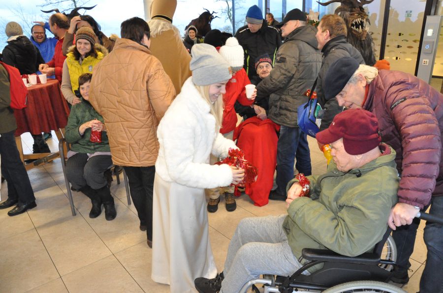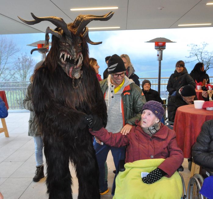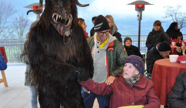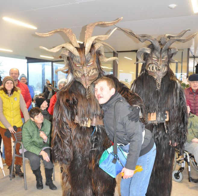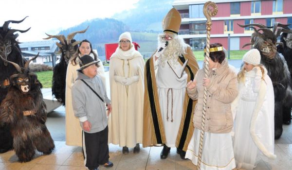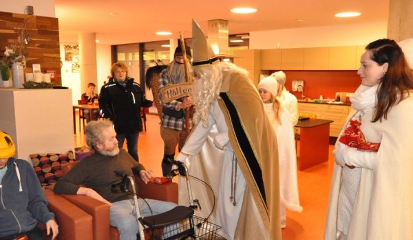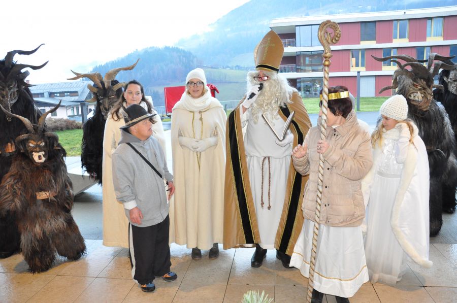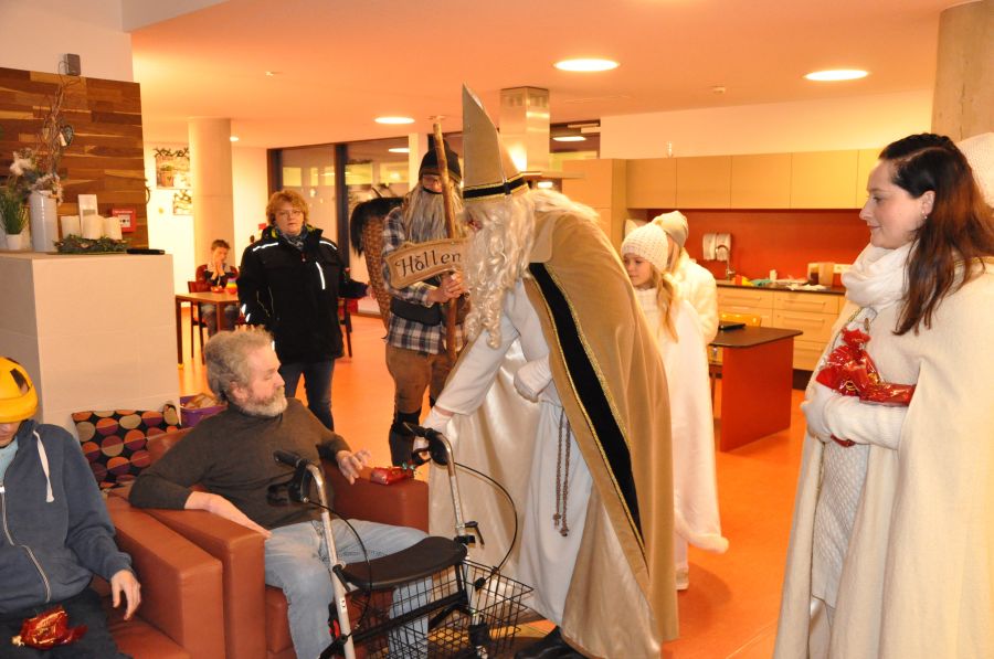 Mit großer Vorfreude und Spannung wurden sie auf der Terrasse des Haus Königsegg von den Klientinnen und Klienten erwartet. Nach einer feierlichen Ansprache bekamen alle vom Nikolaus und seinen Engeln ein Sackerl mit einem süßen Gruß. Im Anschluss besuchte er noch alle Klientinnen und Klienten auf den Wohnbereichen und brachte auch ihnen eine süße Überraschung. Die Krampusse wurden bestaunt und sie stellten sich für so manche Fotoaufnahme zur Verfügung. Bei Punsch und einer Adventjause klang der Nachmittag gemütlich aus.
