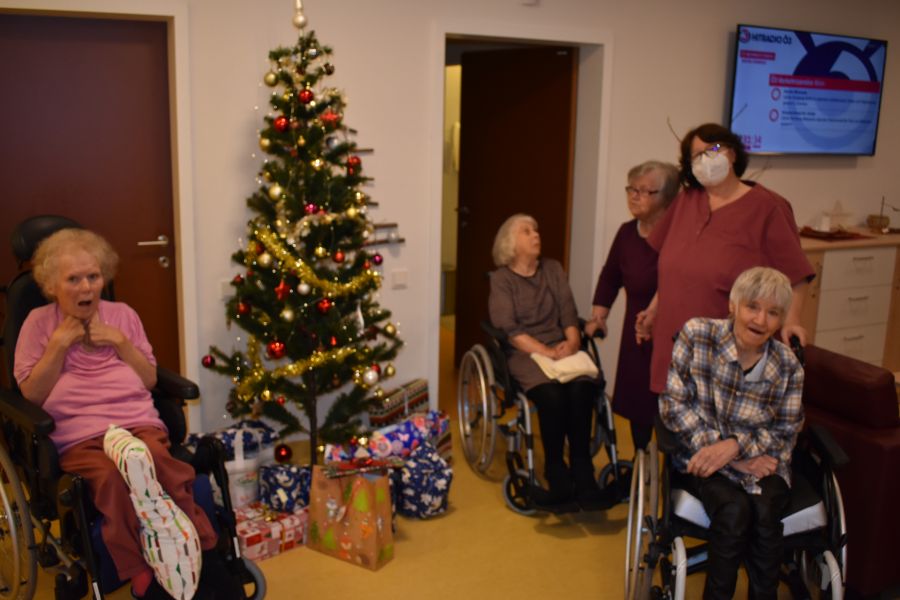 Bei hausgemachtem Punsch und Keksen wurden gemeinsam Weihnachtslieder gesungen und der Duft von Weihrauch zog durchs Haus. Die besonderen Highlights an diesem Abend waren die festlich geschmückten Christbäume und die zahlreichen Geschenke, welche jedes Jahr ein Funkeln in die Augen der Klient*innen zaubern. Bis spät am Abend wurde noch gemeinsam geplaudert und Geschichten von früher erzählt.