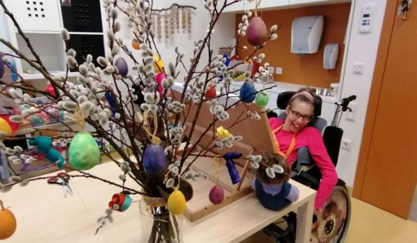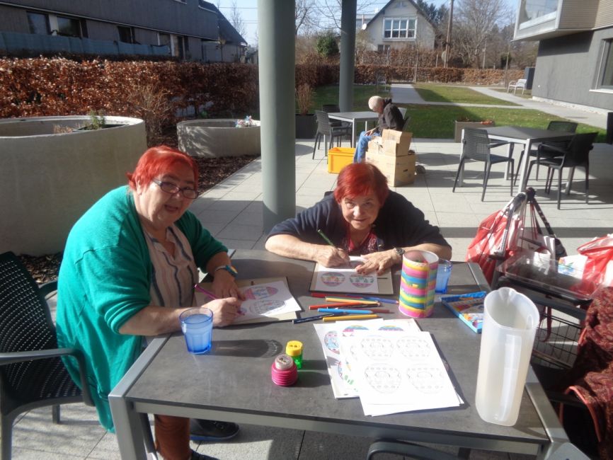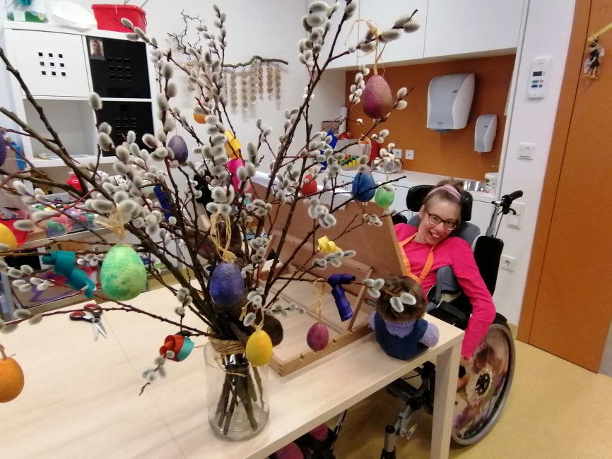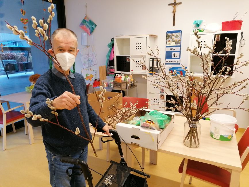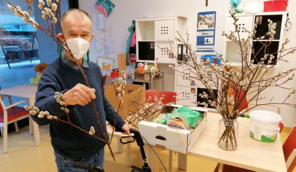 Die Klient*innen des Tageszentrums Provinzenz Liefering stimmen sich nach dem Motto „Frühling wird’s" auf die Frühlingszeit ein.