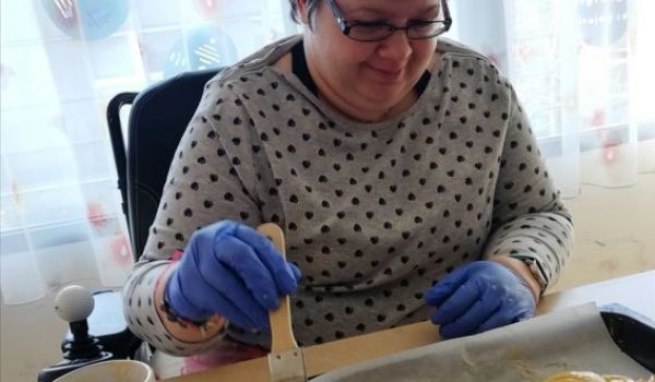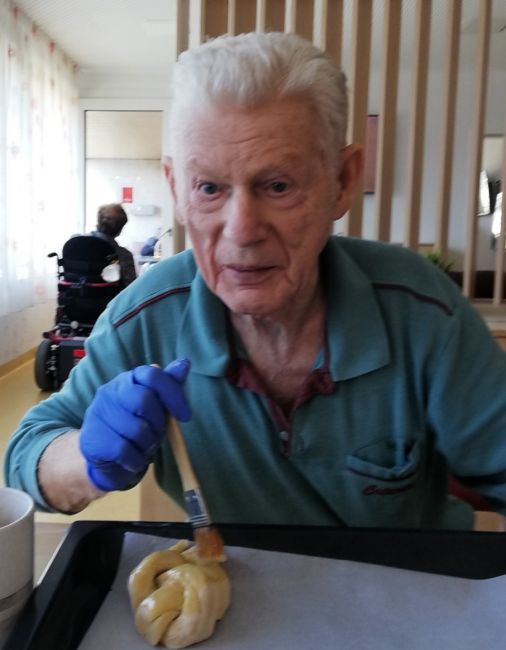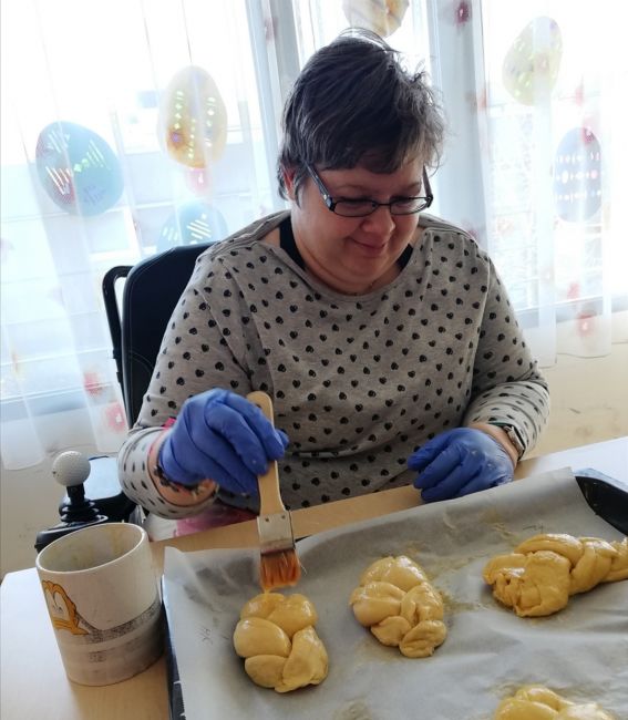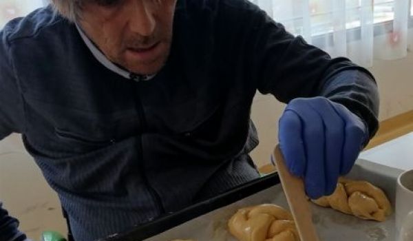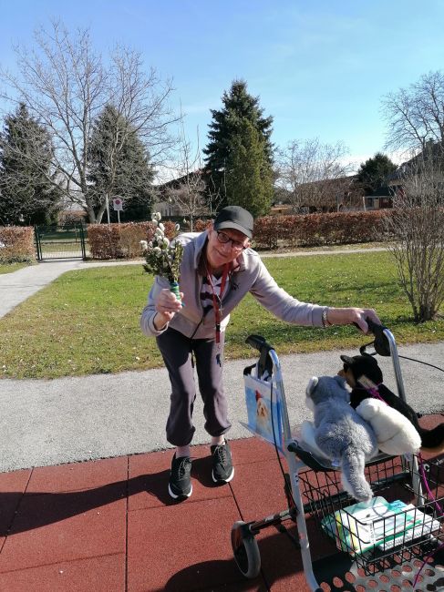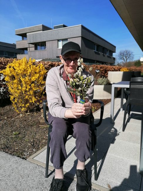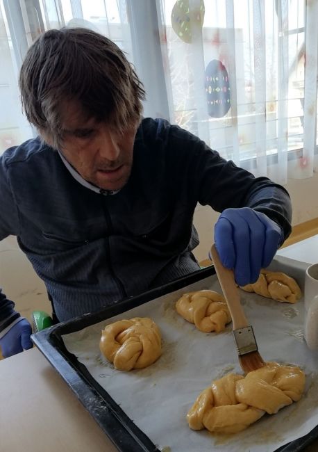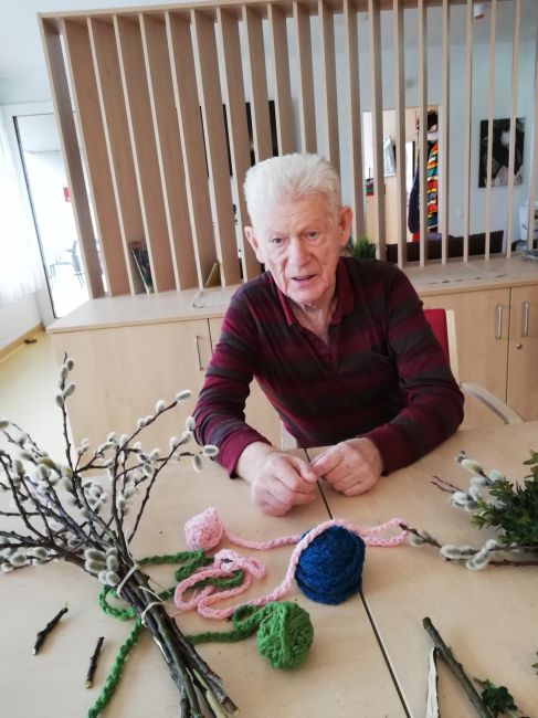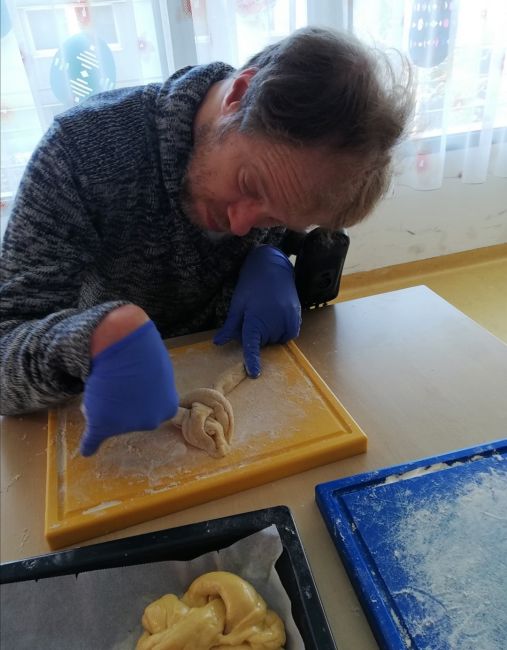 Gemeinsam wurden schöne Palmbesen gebunden und wie es zu Ostern auch vielerorts der Brauch ist wurde ein leckeres Milchbrot gebacken. Alle freuten sich, das warme Milchbrot genüsslich zu verkosten und zu genießen. Leider konnte man an der Palmweihe dieses Jahr nur eingeschränkt teilnehmen. Doch das war kein Hindernis - die Klient*innen feierten den Palmsonntag mit anschließender Weihe der Palmzweige vor dem Fernseher und eine kleine Gruppe konnte auch an der Palmweihe beim Gottesdienst im Pfarrzentrum teilnehmen. Ein ganz besonderer Palmsonntag ging mit strahlendem Sonnenschein zu Ende!