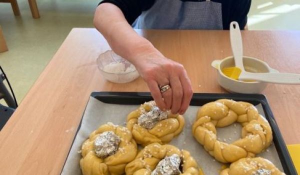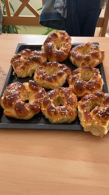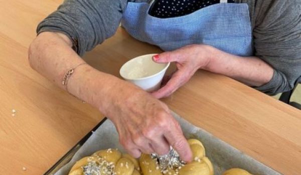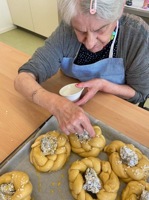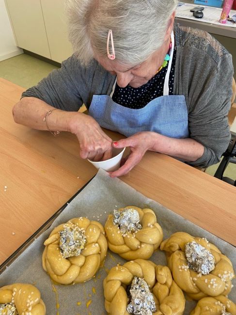 In kleiner Gruppe färbten die Klient*innen schöne und bunte Eier. Auch die Osterstriezel wurden mit gemeinsamer und genauer Arbeit verziert. Warum werden Ostereier eigentlich gefärbt? Die Eier wurden im Mittelalter rot eingefärbt, um die Bedeutsamkeit zu kennzeichnen. Die rote Farbe sollte an das vergossene Blut Jesu und somit an seinen Opfertod am Kreuz erinnern. Erst viel später wurden die Eier auch in anderen Farben angemalt. Und warum wird der bekannte Osterstriezel zu Ostern gebacken? Der Hintergrund ist, dass man sich nach dem Fasten wieder kalorien- und zuckerreiche Kost gönnen darf und dadurch hat das Brot einen süßlichen Geschmack.
