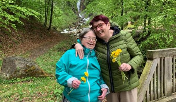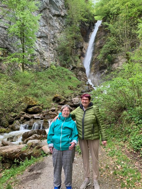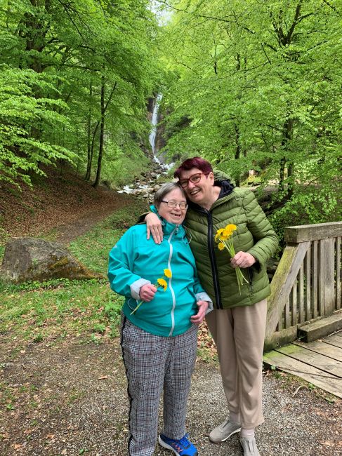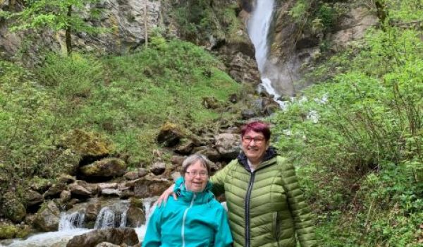 Zwei Klientinnen von Provinzenz Mitterberghütten unternahmen einen Ausflug zum Wasserfall in Bischofshofen.