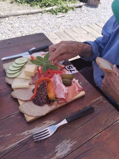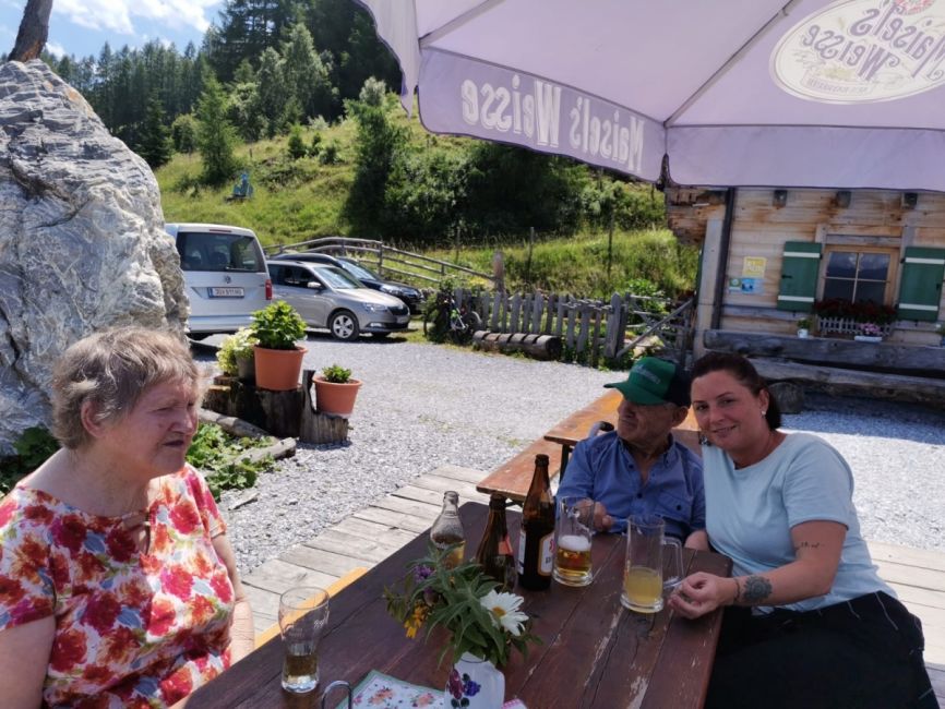 Nach einer ausführlichen Betrachtung der wunderschönen Gegend wurde eine zünftige Almjause bestellt und mit Genuss verspeist. Im Anschluss hat die Wirtin noch auf Kaffee und Kuchen eingeladen. Einen recht herzlichen Dank dafür! Wie es mit schönen Momenten so ist, sie gehen viel zu schnell vorbei und es fuhren alle mit einem Lächeln im Gesicht, dem Tal hinunter Richtung nach Hause.
