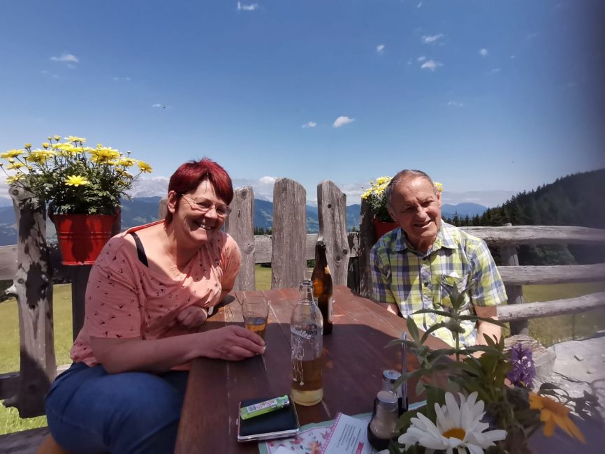 Bei strahlendem Sonnenschein ging es für einige Klient*innen von Provinzenz Schwarzach Markt Richtung Dorfgastein auf die „Kögerlalm“.