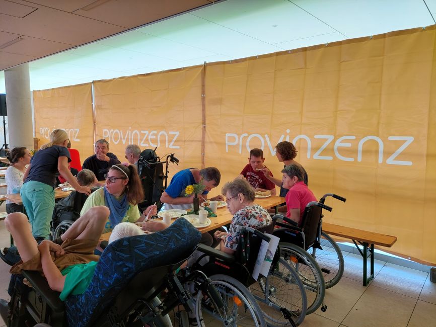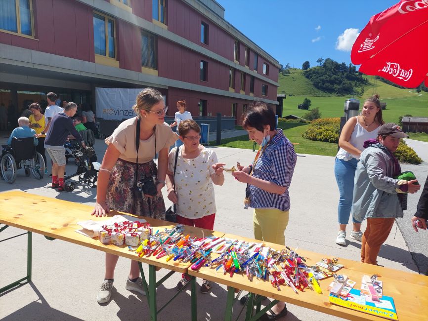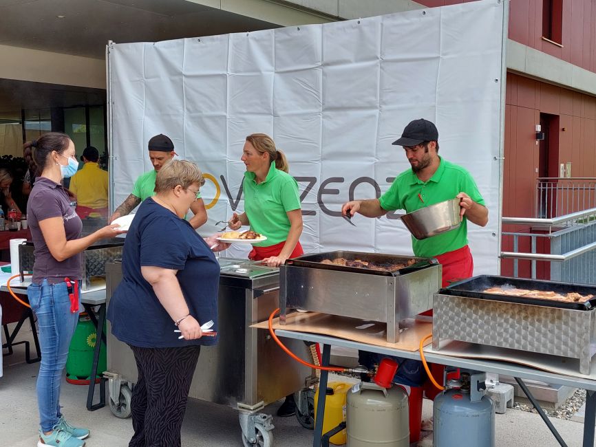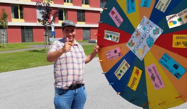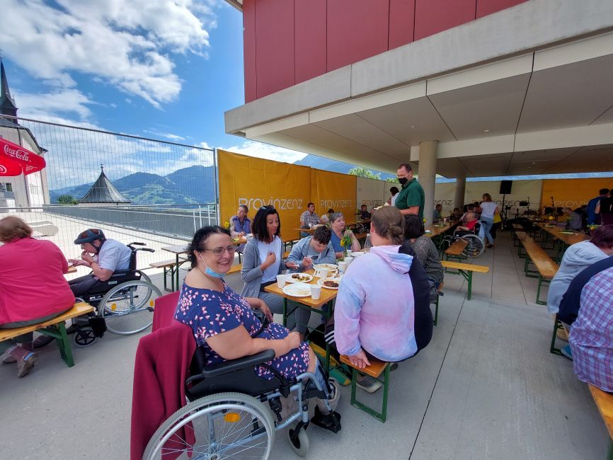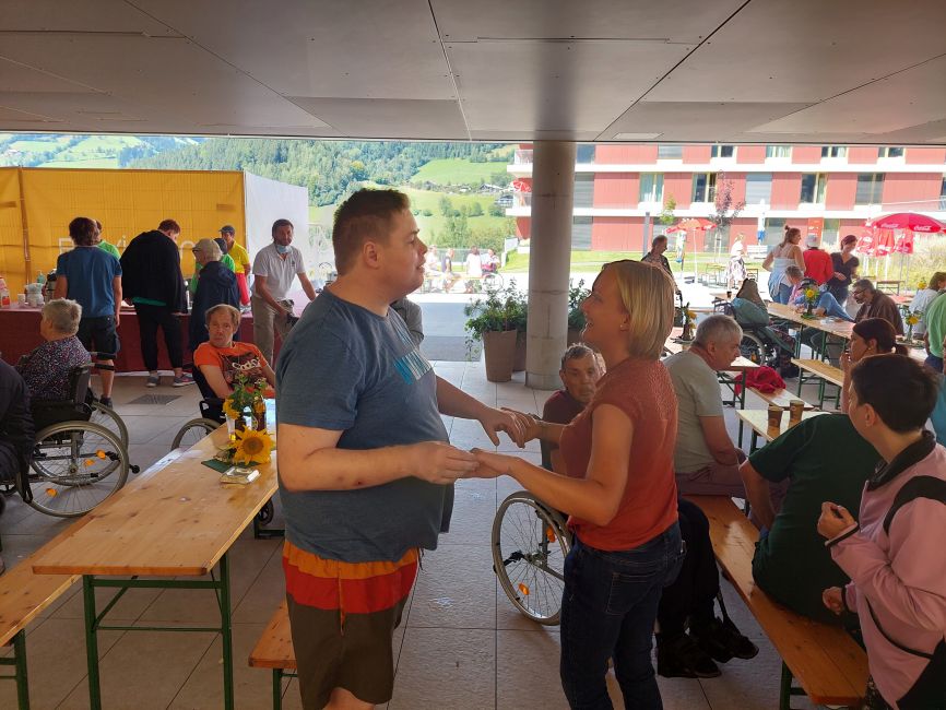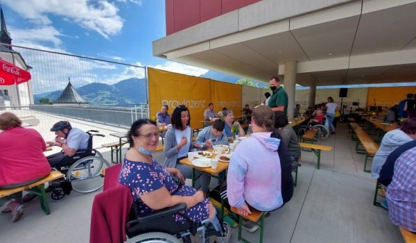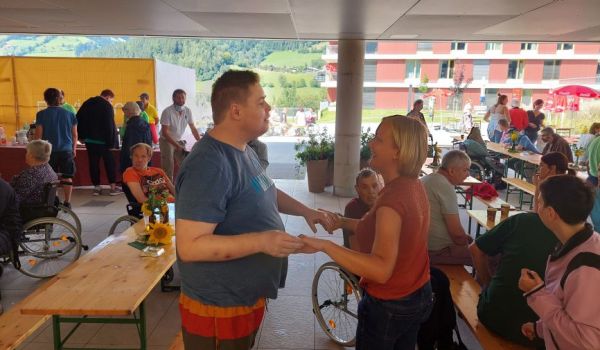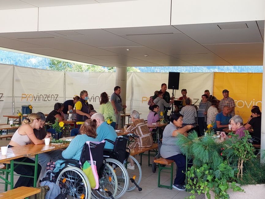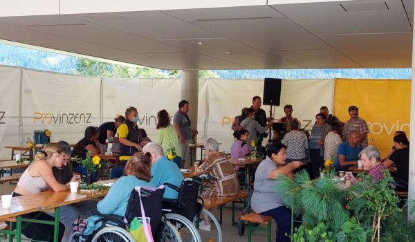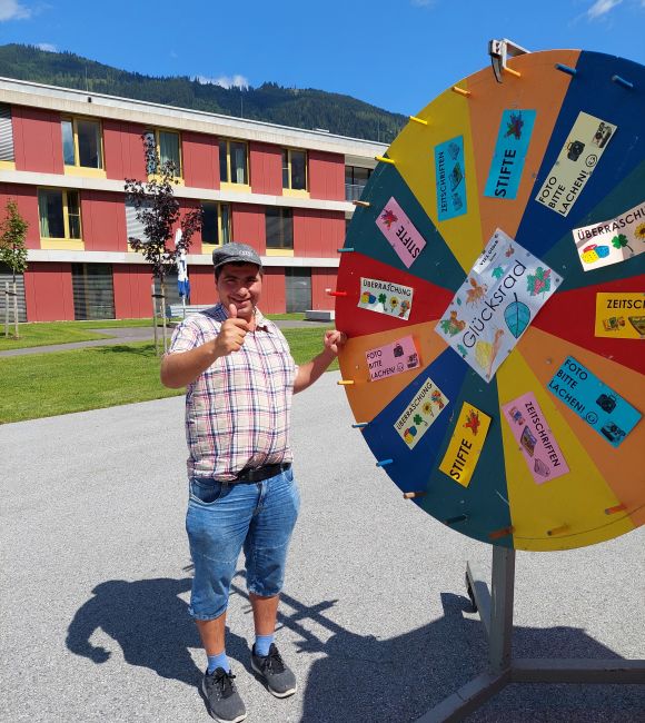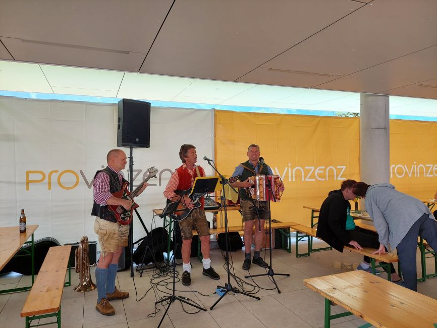 Ein leckeres Grillbuffet und eine große Auswahl an frischgebackenen Kuchen wurde von unserem Kulinarik-Team vorbereitet. Die Musikgruppe „Badhäuslmusi“ sorgte für die musikalische Umrahmung und eine nette Stimmung. Ein besonderes Highlight war das Glücksrad. Die Klient*innen freuten sich über diverse Kleinigkeiten, wie beispielsweise Zeitschriften, Stifte oder ein Foto als Erinnerung.