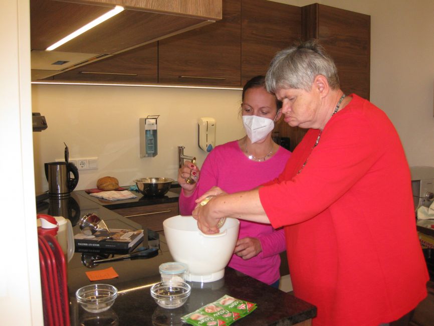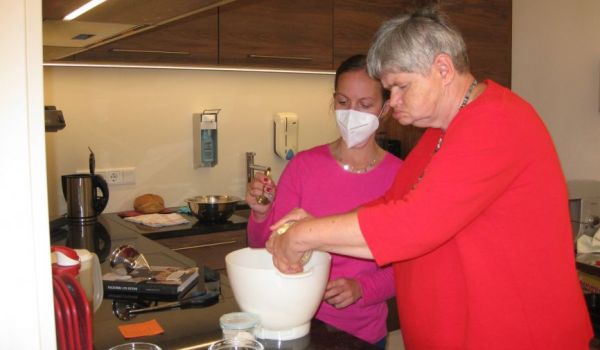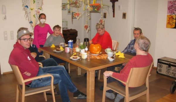 Am Vormittag haben alle gemeinsam für das Frühstück am Allerheiligentag einen Allerheiligenstriezel gebacken, wo jeder tatkräftig mit anpackte. Natürlich durfte an diesem Tag auch ein Halloweenkaffeekränzchen nicht fehlen. Der Tisch wurde mit dem am Vortag gemeinsam geschnitzten Kürbis geschmückt. Alle Klient*innen waren von diesem Tag begeistert und mit viel Freude bei den Aktivitäten dabei.