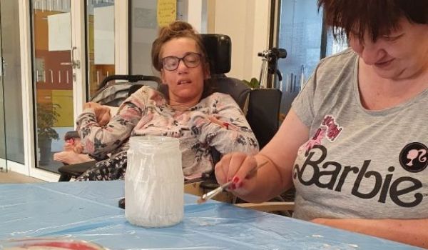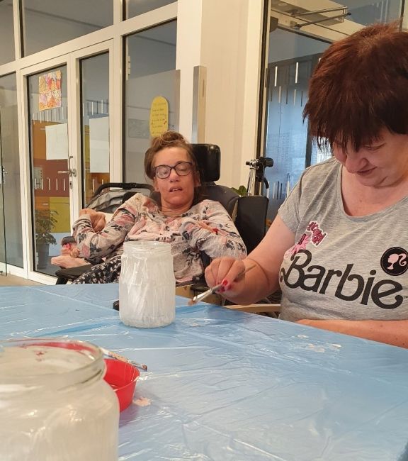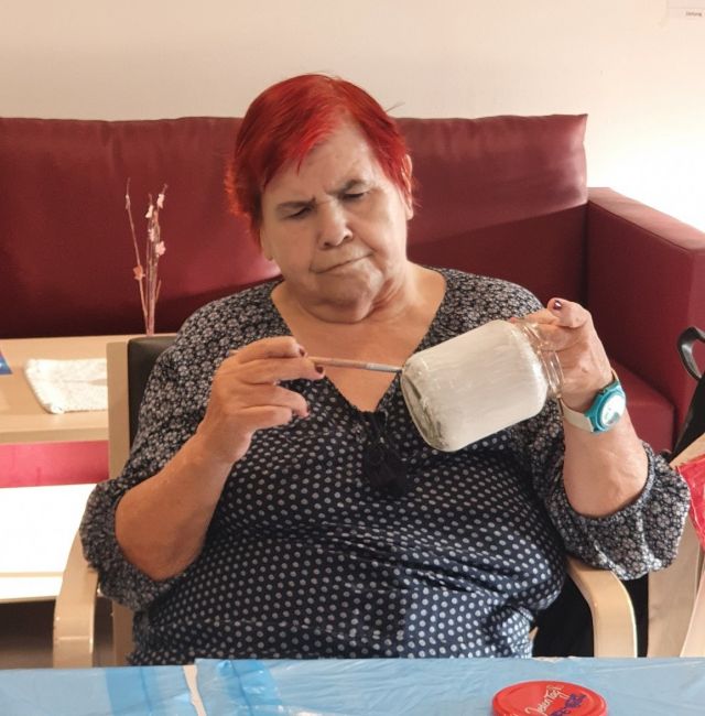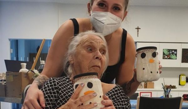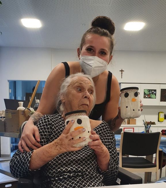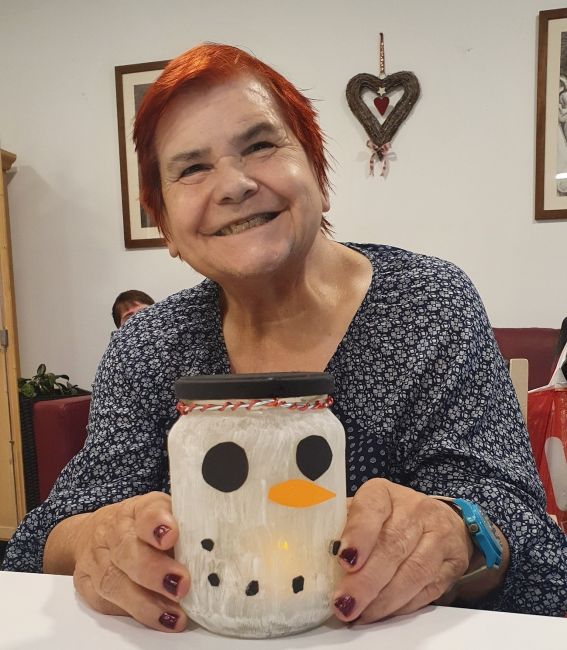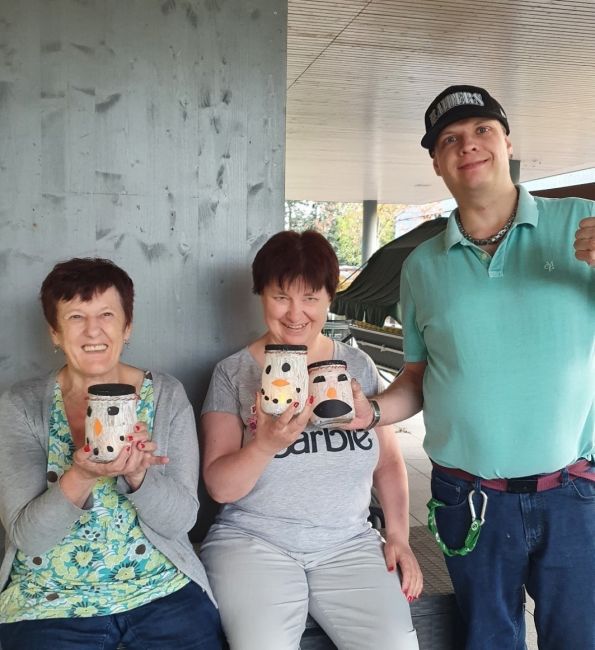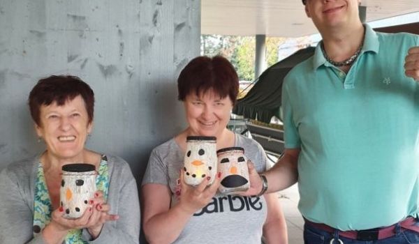 Heute wurden aus Marmeladegläsern Schneemänner gebastelt. Das Interesse war für beide Termine sehr groß. Die Klient*innen genießen diese Zeit sehr, haben Spaß und freuen sich auf den Kommunikationsaustausch mit Klient*innen der anderen Wohngruppen.