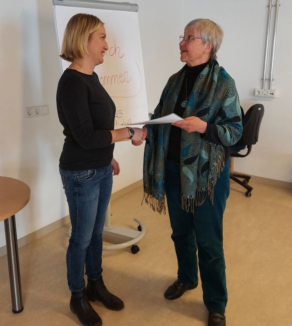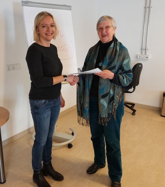 Das EfB-Qualitätssiegel wurde von Frau Luxen anlässlich der abgeschlossenen Efb-Mentor*innenausbildung überreicht.