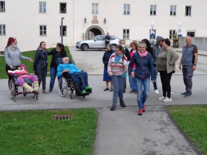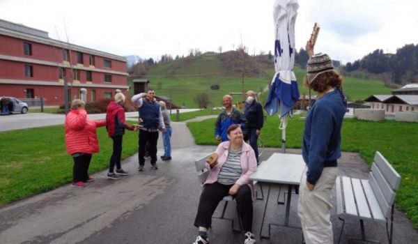 Um 15:00 Uhr trafen sie sich zur Sterbestunde Jesu am Areal ein, wo sie sich mit der "Karfreitagsratschen" bemerkbar machten. So konnten auch die Klient*innen, die in den Wohngemeinschaften waren, zusehen.