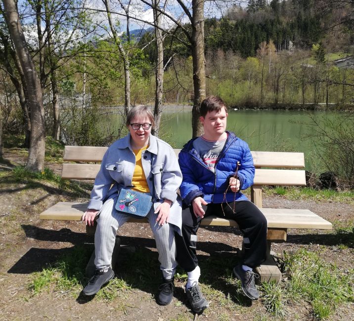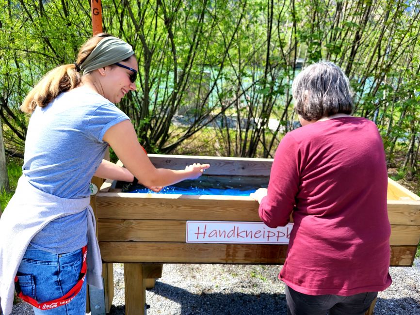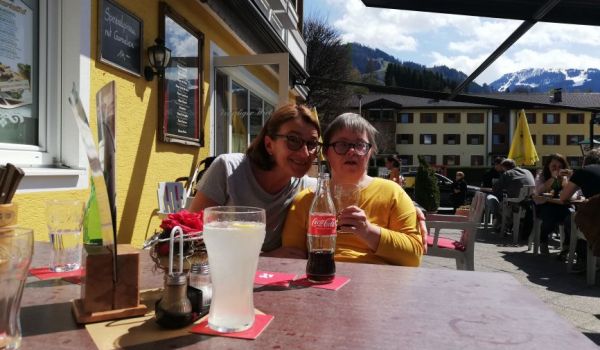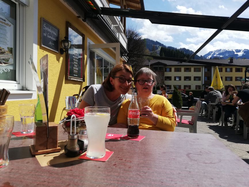 Die Klient*innen von Provinzenz Mitterberghütten stimmen sich bei dem schönen Wetter auf den Sommer ein.