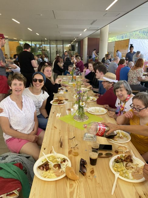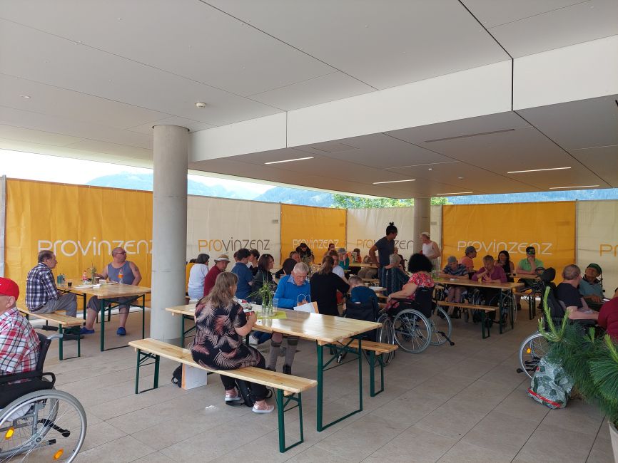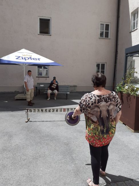 Es war einfach ein unvergesslicher Nachmittag. Es wurde ein leckeres Grillbuffet vom Team Kulinarik vorbereitet und ein Mitarbeiter vom Tageszentrum war der DJ und sorgte für eine tolle Stimmung. Es war für jede Musikrichtung etwas dabei. Anlässlich der Grillfeier gab es auch eine Stockmeisterschaft. Ein weiteres Highlight war das Glücksrad mit vielen tollen Preisen für die Klient*innen.