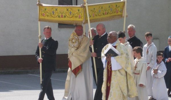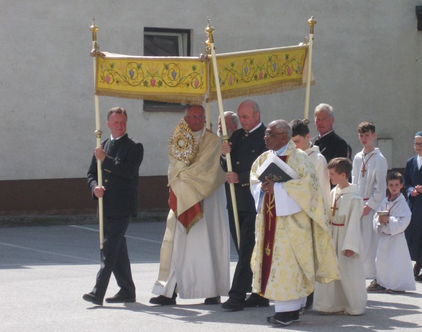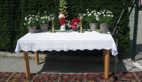 Vor dem Haus Provinzenz Schwarzach Markt war auch dieses Jahr wieder ein Fronleichnams-Altar aufgebaut.