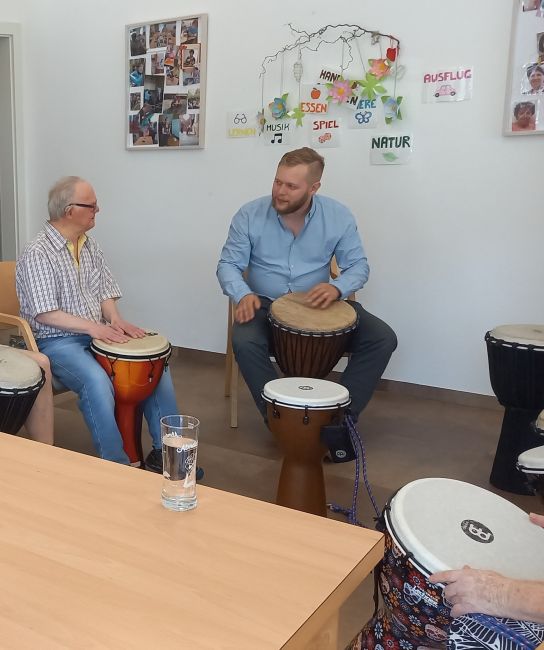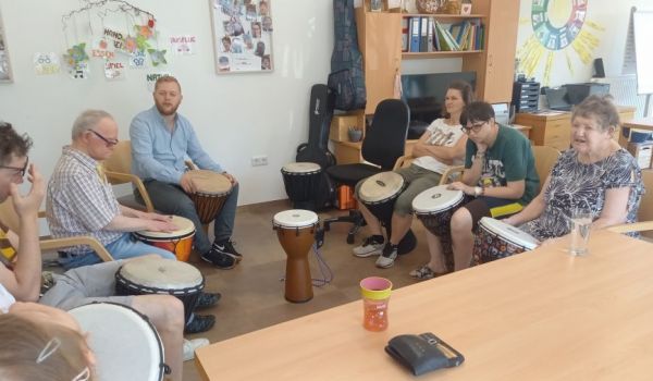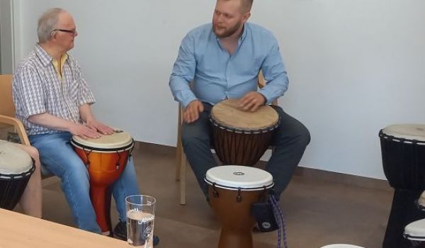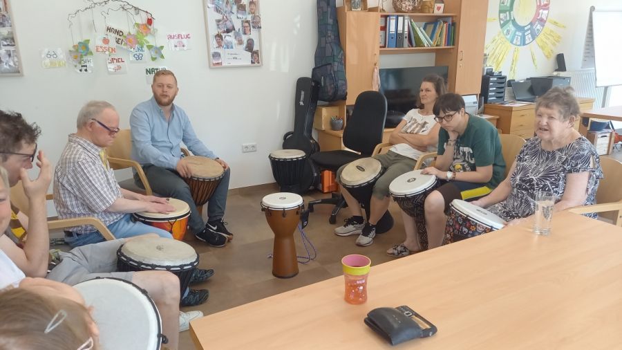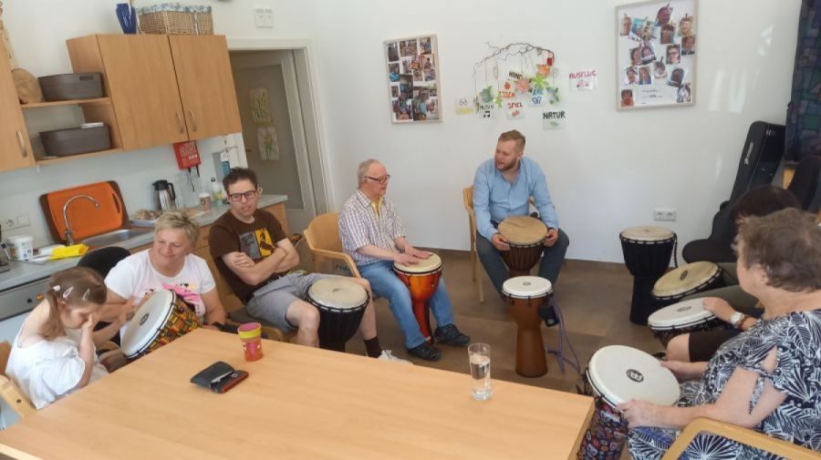 "Die Magie sanfter Schläge auf einer Trommel, berührt tief den Körper und verzaubert die Seele." - Unter diesem Motto ließen sich die Klient*innen und Betreuer*innen von Provinzenz Schwarzach Markt buchstäblich verzaubern.