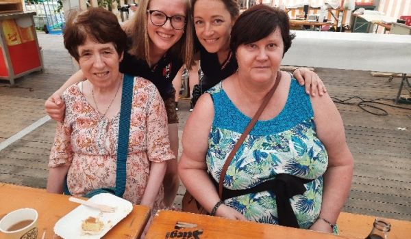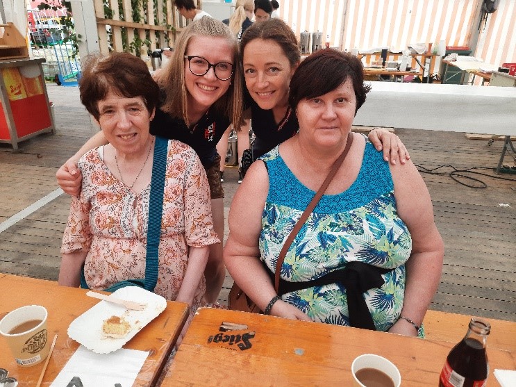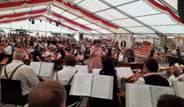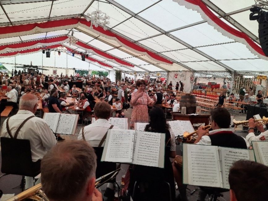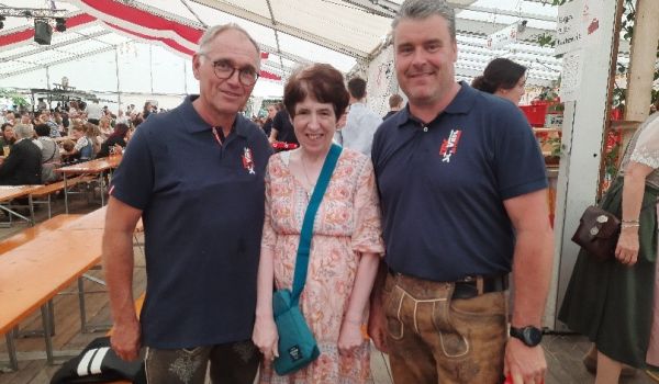 Vier Klient*innen von Provinzenz Schwarzach Markt besuchten das Bierzelt am Jubiläumswochenende der Trachtenmusikkapelle St. Veit.