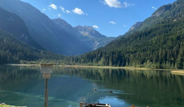 Drei Klient*innen und zwei Betreuer*innen von Provinzenz Schwarzach Markt nutzten das herrliche Wetter und fuhren nach Kleinarl zum Jägersee.