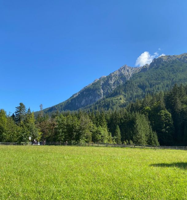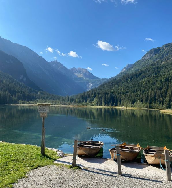 Bei einem Spaziergang am Seeufer entlang genoss jeder die warmen Sonnenstrahlen und den wundervollen Ausblick auf die umliegende Bergwelt. Da frische Luft bekanntlich hungrig macht, gönnte sich die Gruppe im Anschluss noch eine leckere Jause beim Gasthof.